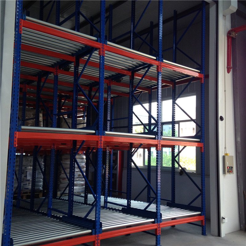 在貨架的組與組之間沒(méi)有作業(yè)通道,從而增加了60%的空間利用率,提高了倉(cāng)儲(chǔ)的容積率;托盤(pán)操作遵循先進(jìn)先出的原則;自動(dòng)儲(chǔ)存回轉(zhuǎn);儲(chǔ)存和揀選兩個(gè)動(dòng)作的分開(kāi)大大提高輸出量,由于是自重力使貨物滑動(dòng),而且沒(méi)有操作通道,所以減少了運(yùn)輸路線(xiàn)和叉車(chē)的數(shù)量。